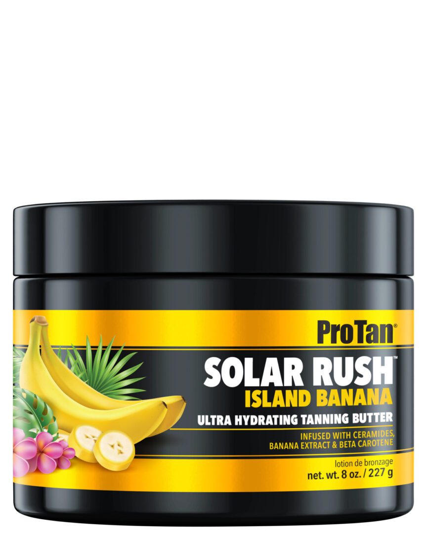 Solar Rush Island Banana Tanning Butter Ultra Hydrating Tanning Butter Infused with Ceramides, Banana Extract and Beta Carotene Solar Rushâ„¢ Island Banana is specifically formulated to deliver maximum tanning results while providing hydration and nourishing skin. Professional Indoor/Outdoor formula.