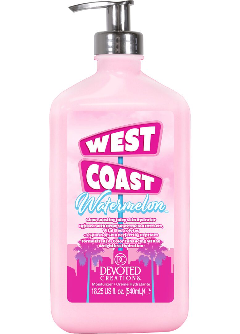 West Coast Watermelon is a glow-boosting juicy skin hydrator that melts into skin with a fresh-squeezed, splashy rush of summer. This dew-drenched infusion wraps the body in lush, water-kissed hydration, leaving skin sunkissed and glossed with a lit from within glow. Watermelon Extract and Coconut Water support moisture retention, while a surge of essential Electrolytes helps maintain optimal hydration levels for a skin-drenching quench that feels beachy, bright, and endlessly sweet. Hyaluronic Acid delivers plump, dewy smoothness, and antioxidant-rich Amla Extract helps ward off dull-looking skin to keep it glowing and golden-hour ready. Enhanced with Skin-Perfecting Peptides and powered by DC’s Signature Color Intelligence Technology, this lush lotion promotes longer-lasting, more luminous-looking color. If you’re ready to activate summer skin that’s plump, glowing, and nourished, then kick back, relax, and let West Coast Watermelon leave you feeling juicy!